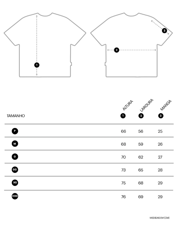 PEÇA EM TECIDO 100% ALGODÃO, GRAMATURA 180G/M², COM ESTAMPA EM SILK SCREEN (SERIGRAFIA), DETALHE EM COSTURA QUE ATRAVESSA A PEÇA E MODELAGEM BOXY.